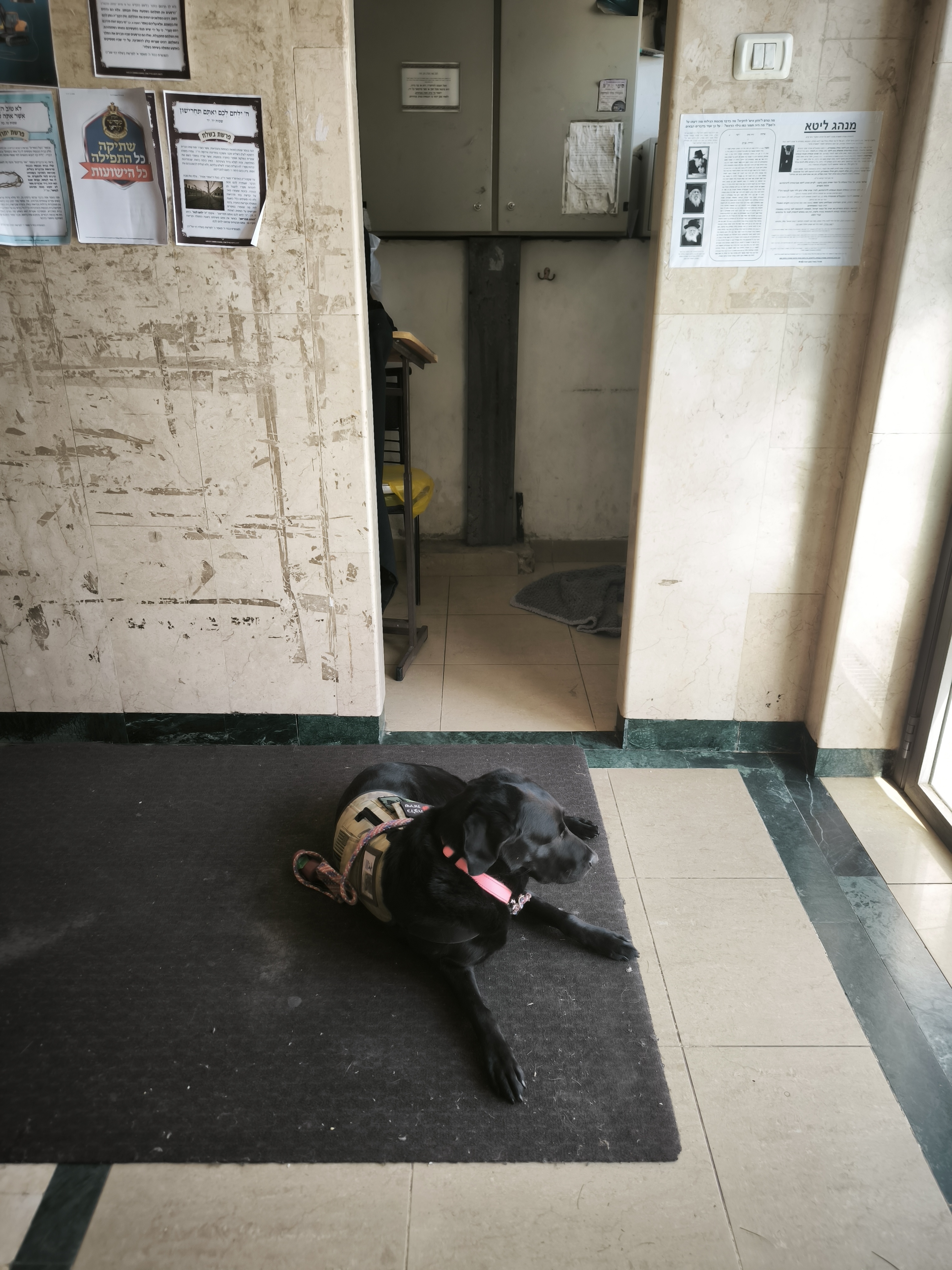 בתוך מבואת הכניסה לבית הכנסת רובץ לאחרונה כלב שחור גדול • זו הסיבה בעטיה התיר הרב את הגעתו לשיעור היומי • בלעדי