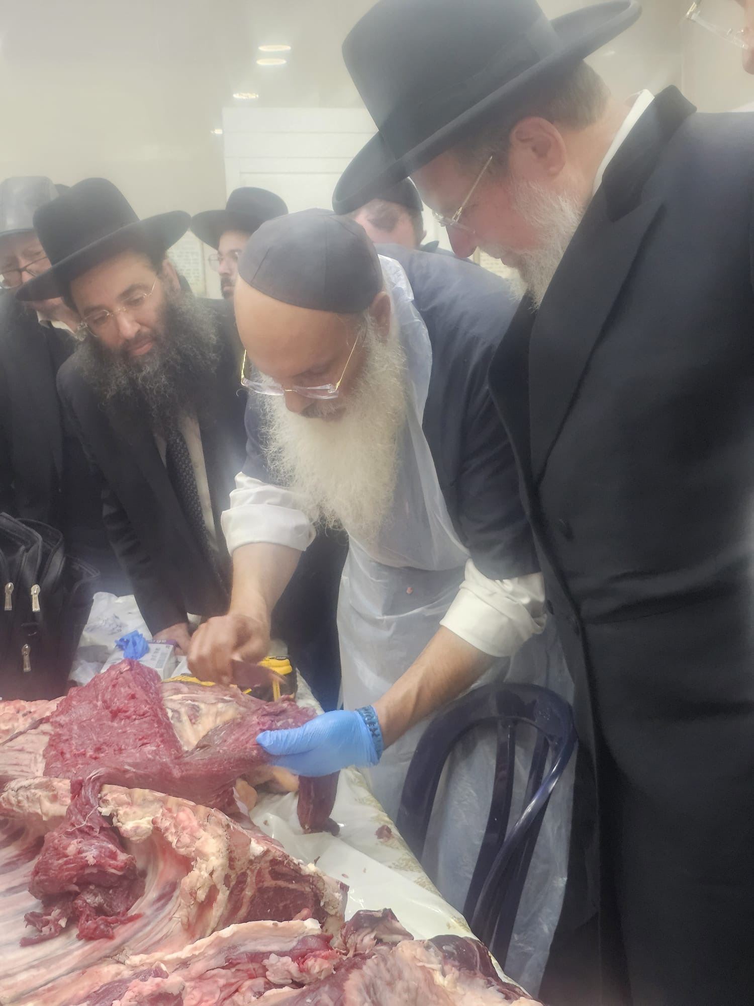 המפקחים והרבנים הצטופפו יחד וראו מקרוב שבנוסף לצד ההלכתי, חשוב לא פחות גם את הידע המקצועי, כדי להפריד בין השומן האסור למותר ולזה צריך אחריות גדולה עם יראת שמים.