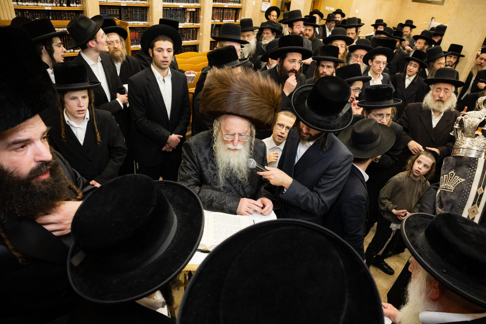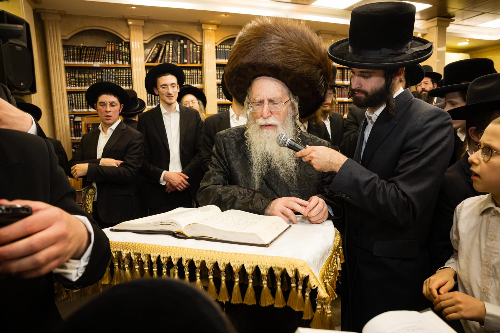 מעמד מפואר בהכנסת ספר תורה לביהמ"ד הגדול בקריית צאנז, בראשות הרה"ג רבי דב וייס שליט"א - חדב"נ דכ"ק האדמו"ר מצאנז זי"ע. במעמד השתתפו בני האדמו"ר מגור שליט"א. צפו