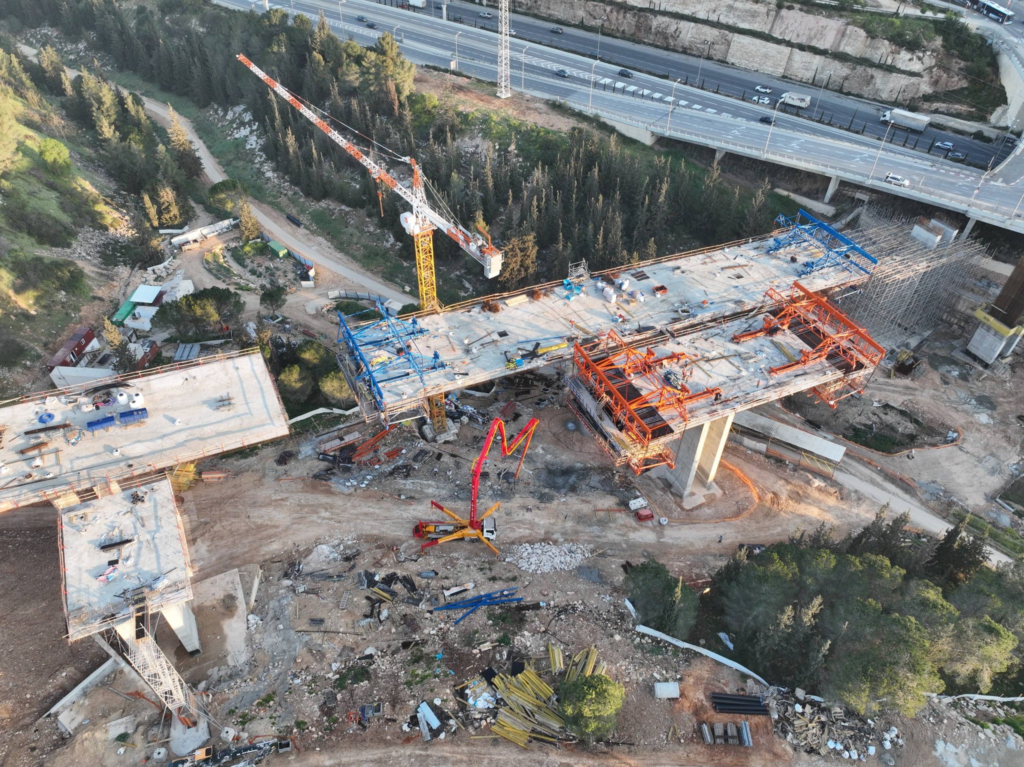 'עין הנץ' תיעד ממרום: הנפת קורות ענק בגשר רמת שלמה