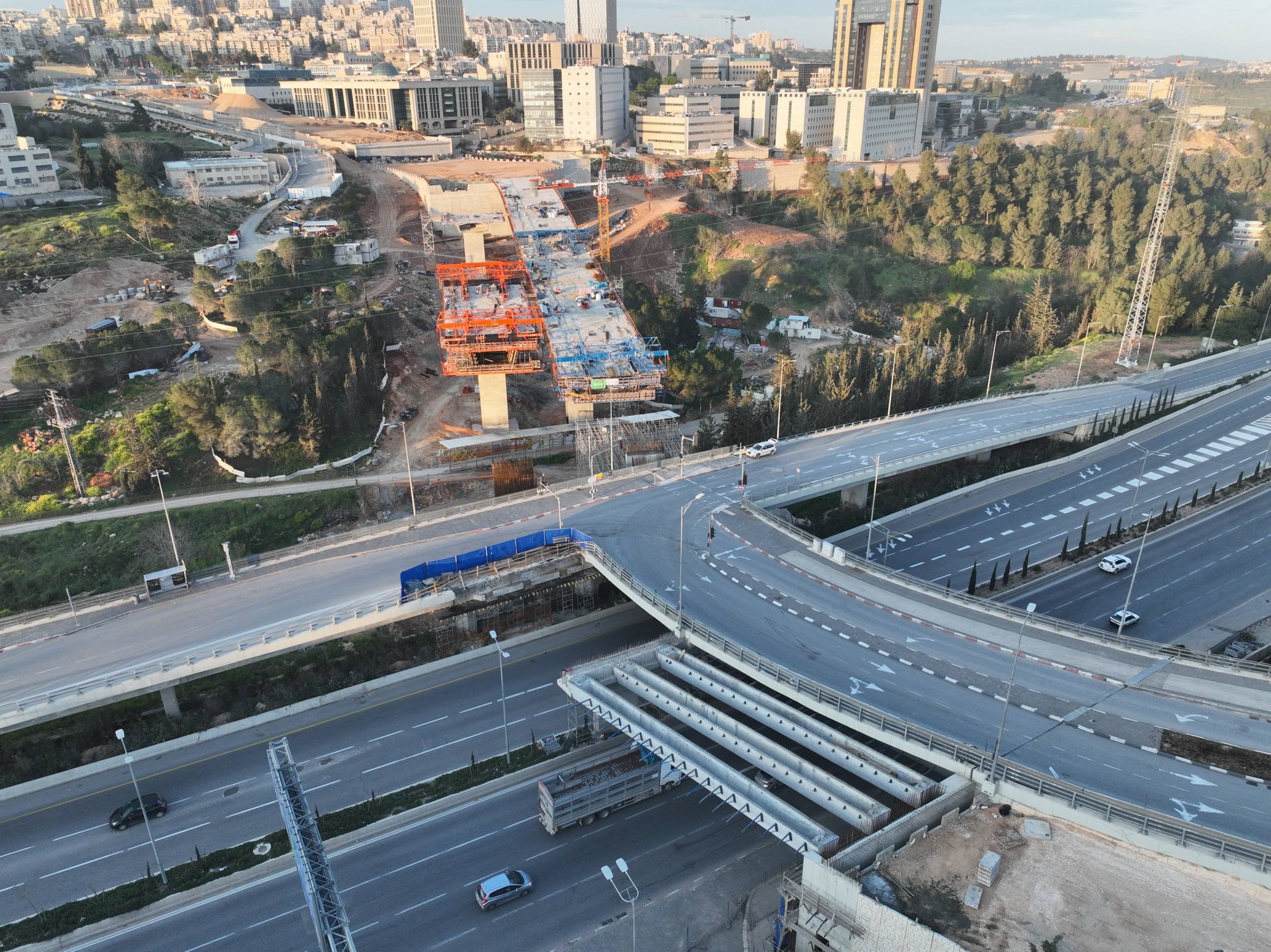 שלוש קורות הונפו מעל דרך יגאל ידין במהלך הלילה • המבצע צפוי להימשך גם הלילה כחלק מהרחבת המחלף