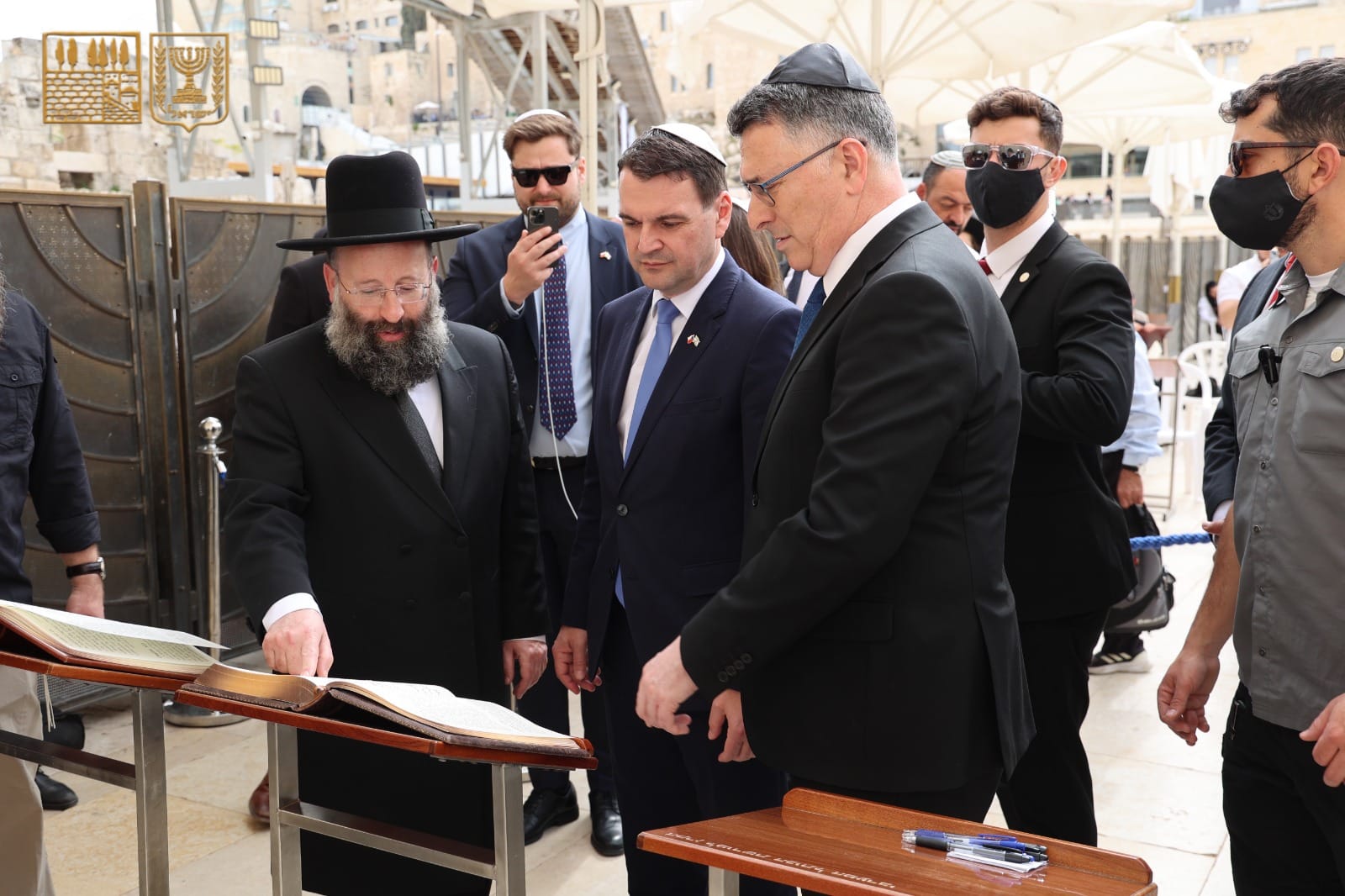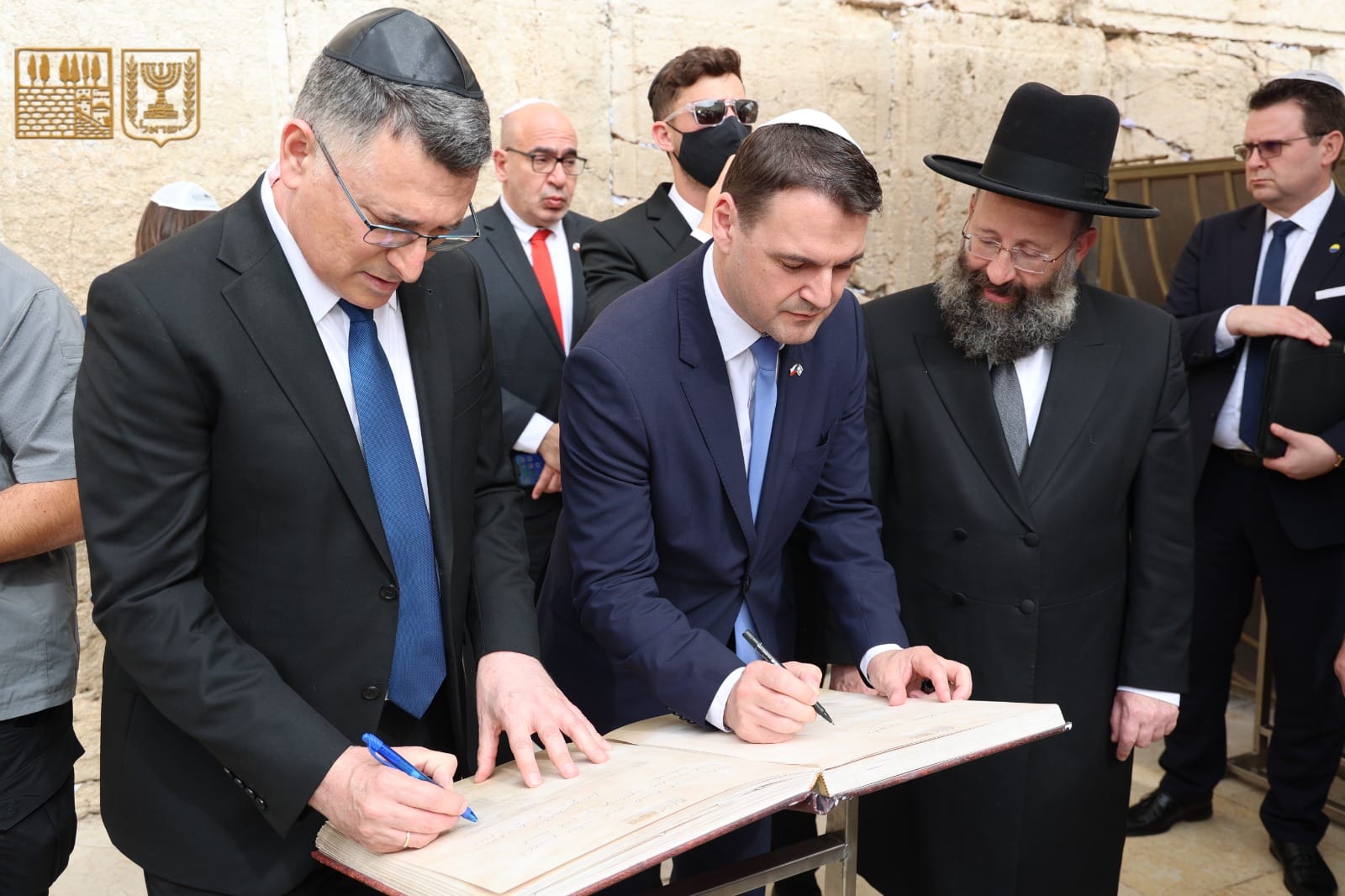שר החוץ הצ'כי פטר מצינקה הגיע לביקור תמיכה בכותל המערבי יחד עם שר החוץ גדעון סער • כתב פתק אישי והטמינו בין אבני הכותל