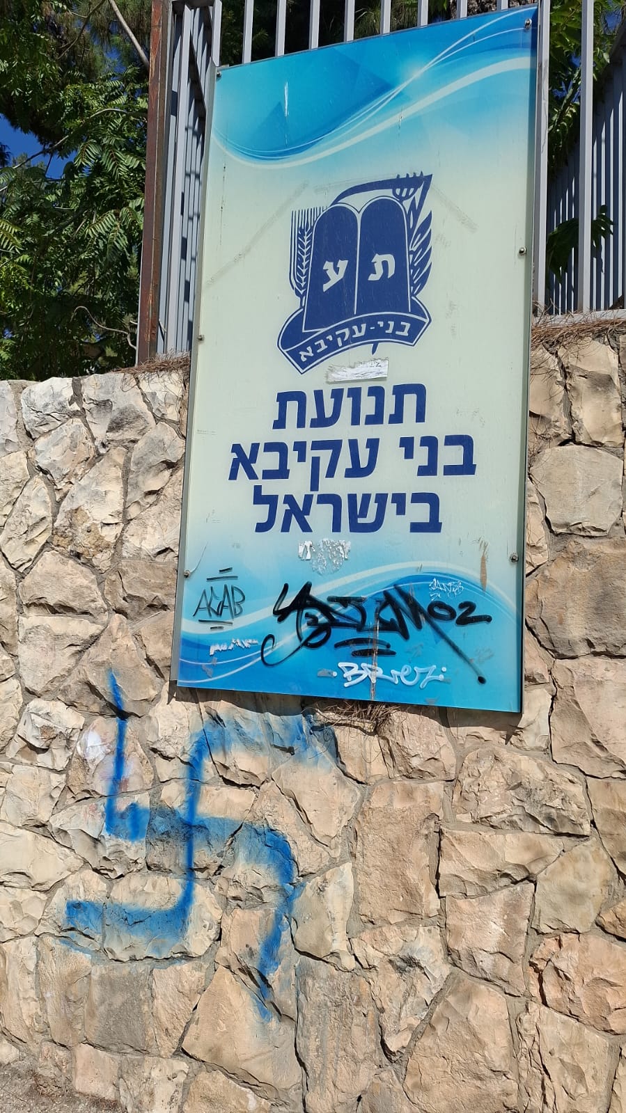 מתנועת בני עקיבא נמסר: תנועת בני עקיבא המומה ומזועזעת בעקבות ריסוס צלבי קרס בחזית בניין ההנהלה הארצית של תנועת בני עקיבא בירושלים. הכתובות רוססו בדיוק שבוע לאחר הירצחה של "האמא של בני עקיבא" שריתה מנדלסון הי"ד שעבדה בהנהלת התנועה בעשרות השנים האחרונות, בפיגוע בשכונת רמות בירושלים. מדובר בפעם הרביעית בה אלמונים מרססים צלבי קרס בחזית בניין ההנהלה הארצית, אך טרם נמצאו האחראים לונדליזם והפגיעה הקשה. זאת למרות שהוגשו בעבר תלונות למשטרה, אך ללא תוצאות.