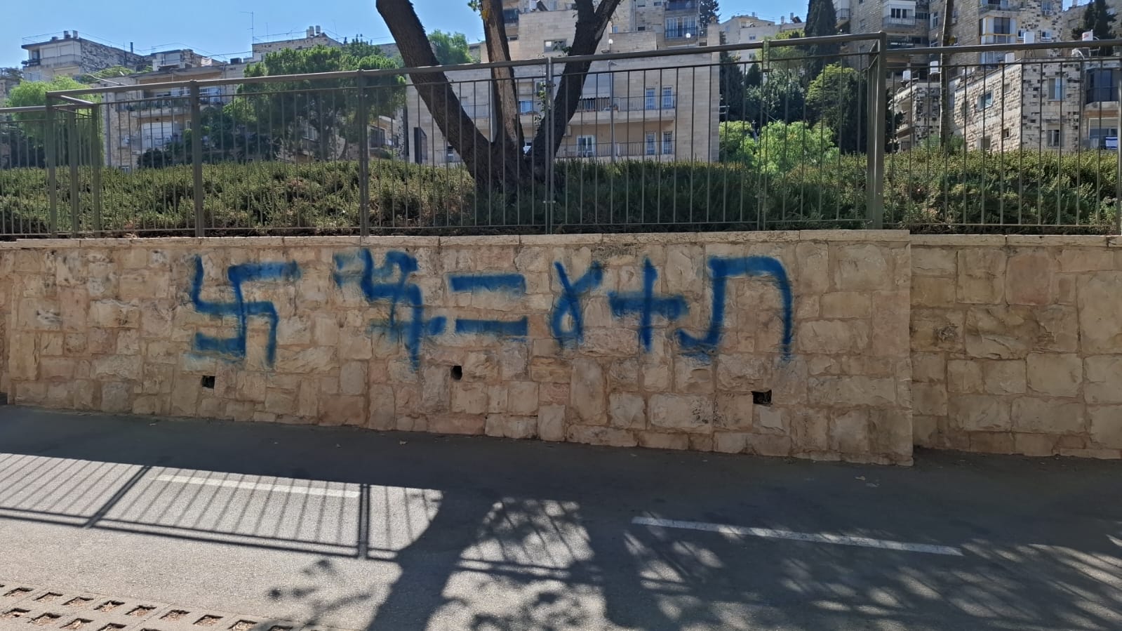 מזעזע: בלב ירושלים, בשכונת ניות, אותרו הבוקר כתובות נאצה וסמלי קרס על בניין הנהלת תנועת בני עקיבא. המקרה התגלה הבוקר (שלישי), שבוע בדיוק לאחר הפיגוע הנורא בצומת רמות.
