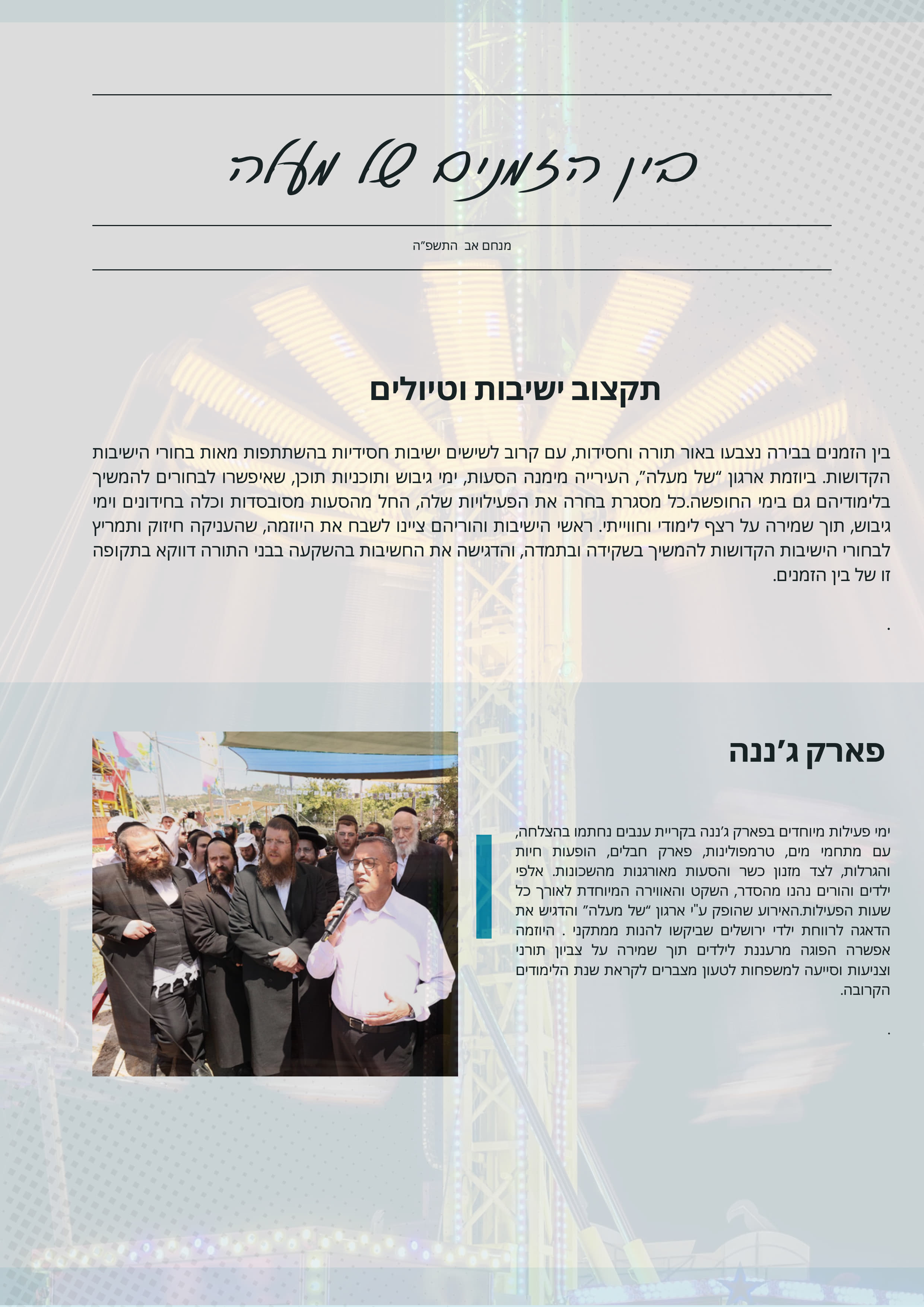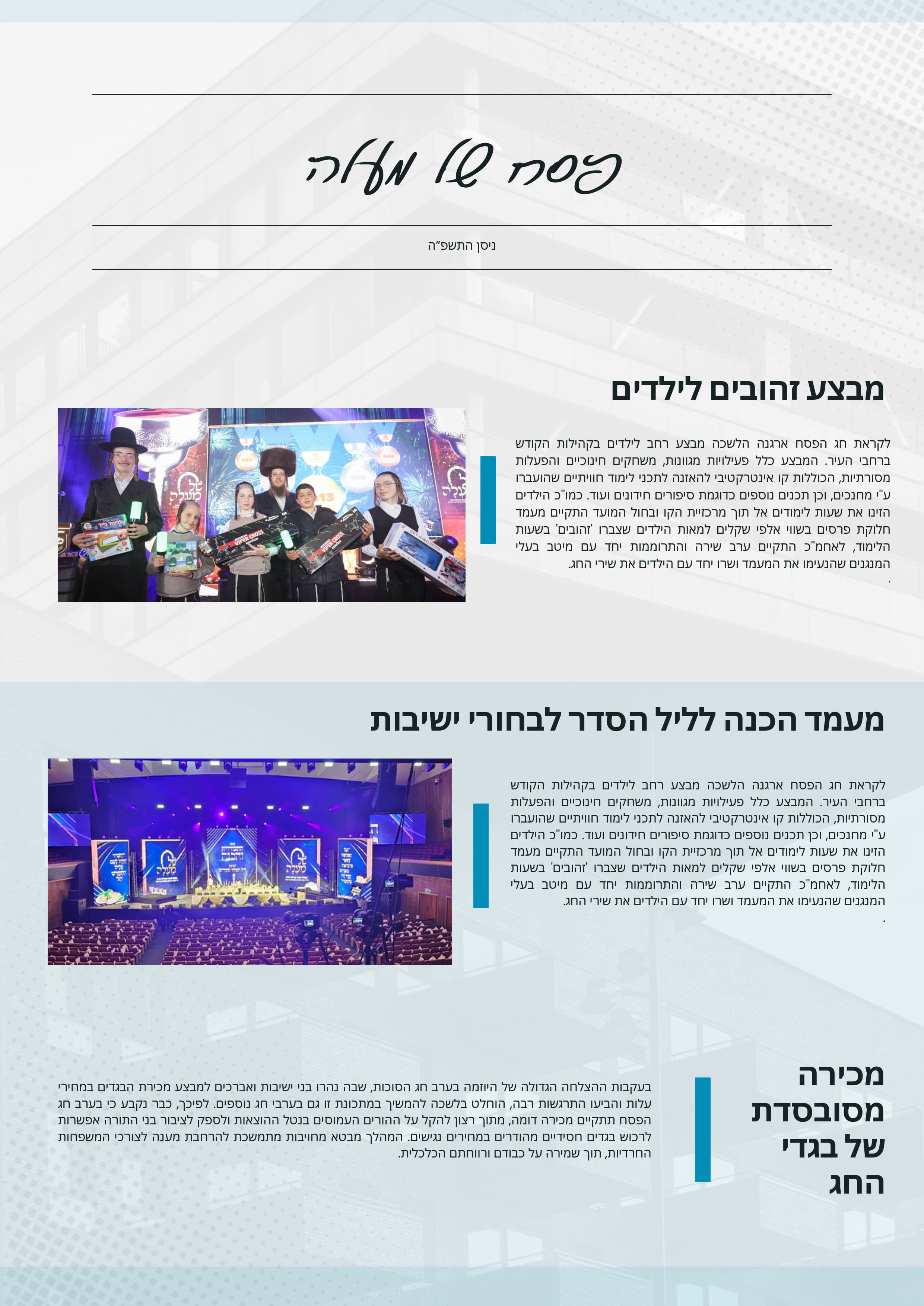 הסגן מסכם שנה: בלשכת סגן ראש העיר ירושלים, יצחק מאיר ברים, סיכמו את שנת תשפ"ה עם רשימת הישגים מרשימה במגוון תחומים לטובת הציבור החרדי בירושלים. בערב החג הופץ לעשרות אלפי תושבים ניוזלטר חגיגי תחת הכותרת "סיכום שנה של מעלה", המסכם את פעילות הלשכה במהלך השנה החולפת.