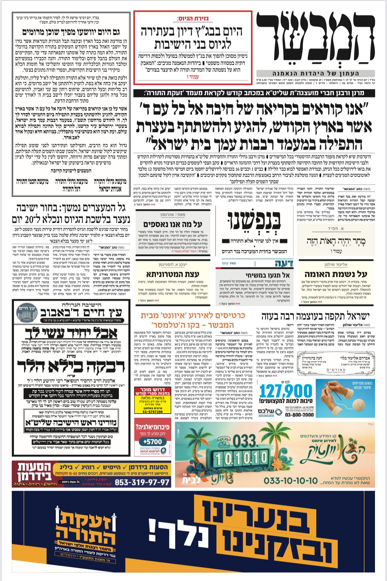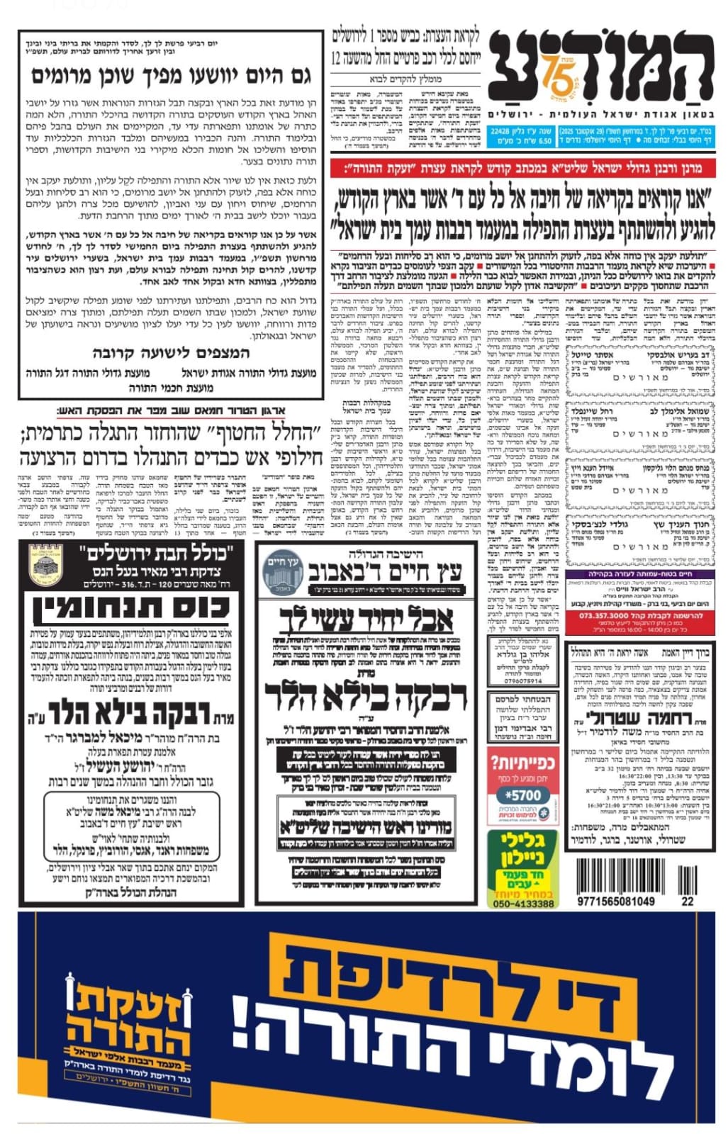 במקביל לא נזנח השימוש במדיה הישנה: הבוקר פורסמו בשלושת היומונים החרדיים מכתב זהה של מועצות האדמורים והרבנים, הקוראים להשתתף בעצרת. כל היומונים הקפידו על זהות אחידה של המכתב ועל מיקום זהה - ב"אוזן" הפינתי משמאל בעמודו הראשון של הגיליון - עבור חשיפה רבתי והענקת חשיבות.
