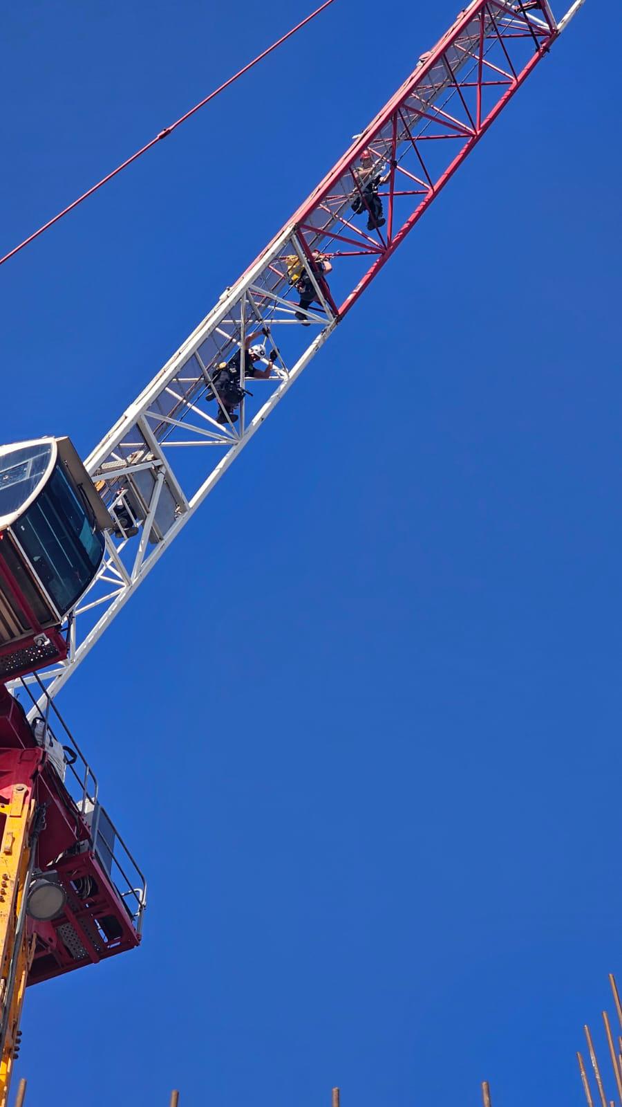 "הוא הגיע ממש עד לקצה העגורן למעלה", מתאר רב רשף אריק אבולוף, מפקד משמרת בתחנת האומה. "ואז ככל הנראה החליק, למזלו הרב הצליח לאחוז בכבל וגלש עד למשקולת. הוא נמצא שם מאז חצות הליל. עם אור ראשון עובר אורח הבחין בו ומיד דיווח למשטרה ולכוחות ההצלה. טיפסנו על העגורן, בנינו מערכת חבלים מורכבת, מחלץ יגלוש אליו ויוריד אותו בבטחה אל גג המבנה."