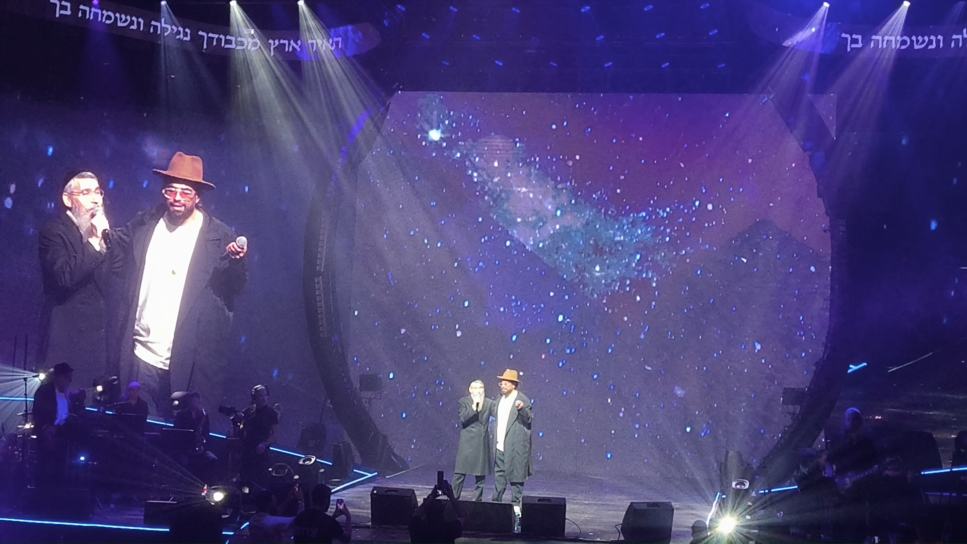 את המופע פתחה כוריאוגרפיה מושקעת, שהטמינה מאחורי 'מגדלי מבצר' מדומים, את 4 האומנים שעוד מעט-קט יפציעו וילהיבו את הקהל: ר' אברמל'ה פריד – ענק הזמר החסידי, שכמובן מגיש את ניגוני חב"ד באותנטיות וירטואוזית מפעימה. לצדו הטנור הנודע מוטי שטיינמץ; הזמר עקיבא תורג'מן וגם איש המילים והמנגינות: בניה ברבי, שמופיע כאן עם כובע גדול מעל הקוקו הבלתי-נפרד, ובאופן מפתיע עם ציצית גדולה שכנפותיה מתנפנפות בצורה מופגנת לכל עבר.