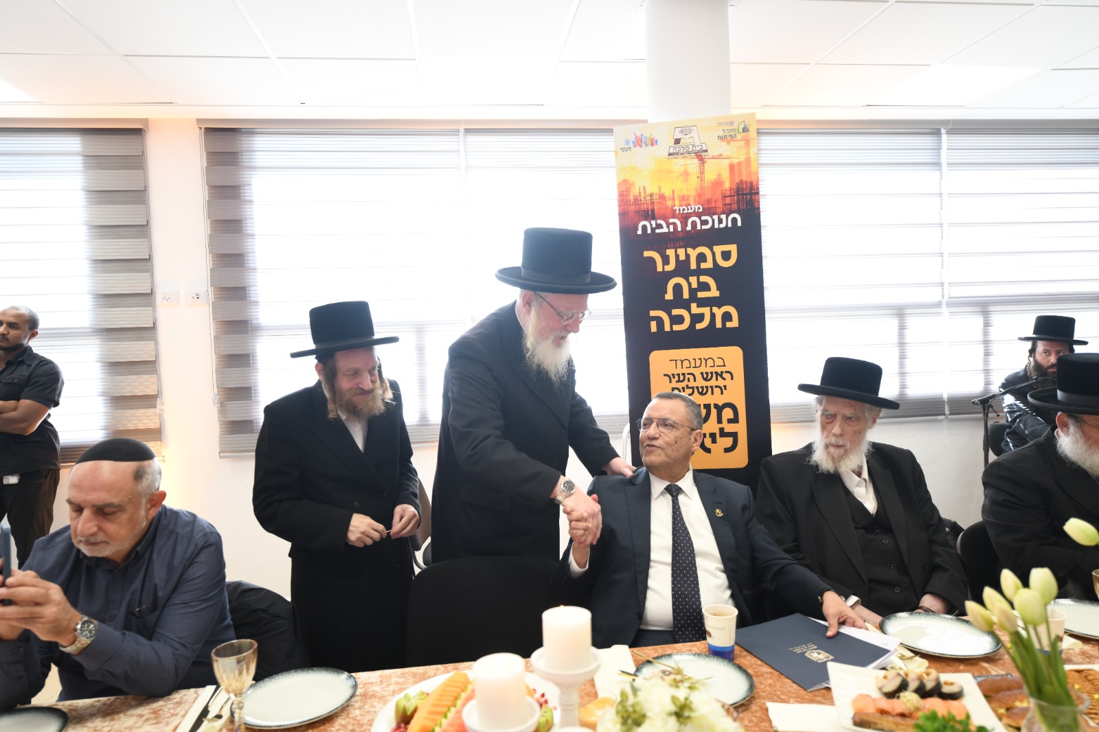 רגע מרגש במיוחד נרשם כאשר הוקרנה ברכת קדשו של כ"ק מרן שליט"א, שהובעה בשליחותו על ידי העסקן הדגול בנש"ק הרב מיכל הלברשטאם, חבר הנהלת העיר, בקבוק יין עם הקדשה אישית לראש העיר. במהלך התיעוד נראה הרב מיכל שליט"א מספר למרן שליט"א על מסירותו הרבה של ראש העיר למען כלל פעולותיה הגדולות של קהילת בעלז המעטירה בירושלים עיר הקודש.