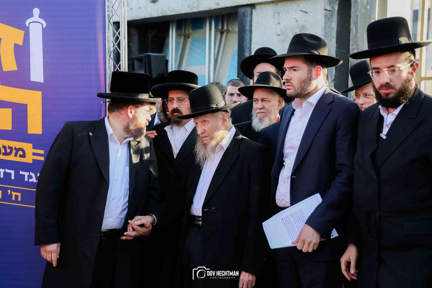 האדמו"רים וראשי הישיבות מעל העדות והחוגים, כאשר מדובר בקשת נרחבת שמייצגת החל מרבני בד"ץ "העדה החרדית'" ועד לרבני הציבור הדתי לאומי, פזורים אף הם במוקדים השונים אם כי העיניים נשואות לבמת הכבוד שבה ניצבים ראשי הישיבות הגר"ד לנדו והגרמ"ה הירש שליט"א, והיא ממוקמת בחזית בניין מלון 'ירמיהו 33' של ארגון יד שרה.