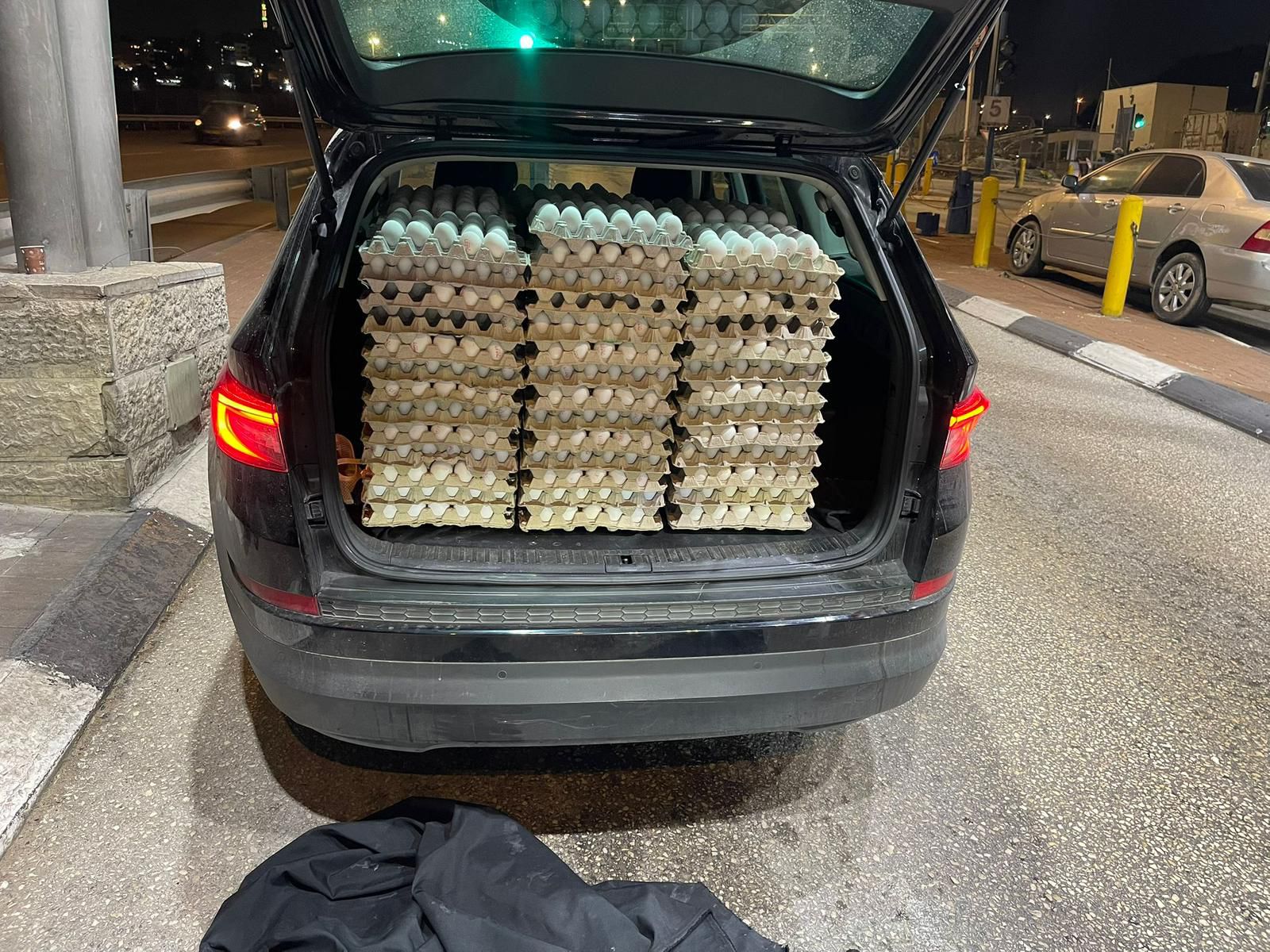 כמה תבניות זה? שורה של ניסיונות הברחה של תוצרת מזון לא מפוקחת סוכלה בתוך שעות במעברים סביב ירושלים, כאשר כ-77 אלף ביצים עם חותמות מזויפות נתפסו בדרכן לישראל מהרשות הפלסטינית. לצד הביצים, נתפסו גם כ-250 ק"ג בשר בקר וכ-150 ק"ג שעועית שלא עברו פיקוח.