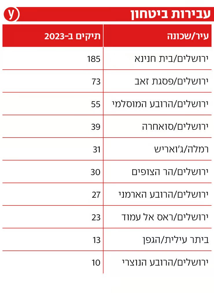 מזרח העיר: אזורי מזרח ירושלים בכלל מופיעים באופן בולט בנתוני עבירות הביטחון.