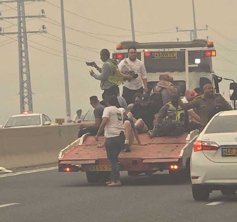 בורחים מהאש: מחזות שלא יאמנו נראים עתה בכביש 1, שם נעצרה התנועה ואלפים נוטשים את רכביהם ונמלטים אחורנית. ההמונים נצפים כשהם עולים על כל רכב מזדמן וכך מבקשים למלט את עצמם מהשריפות שהתקדמו במהירות והגיעו אל הכביש.
