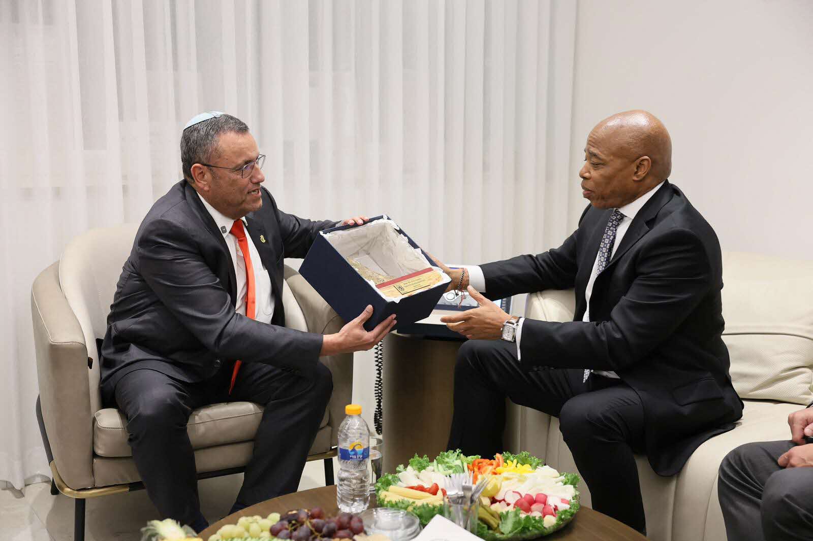 ראש עיריית ניו יורק היוצא, אריק אדמס, שעורך בימים אלו ביקור ממלכתי בישראל ביקר ונפגש עם ראש עיריית ירושלים, מר משה ליאון, בלשכתו שבבניין ספרא.
