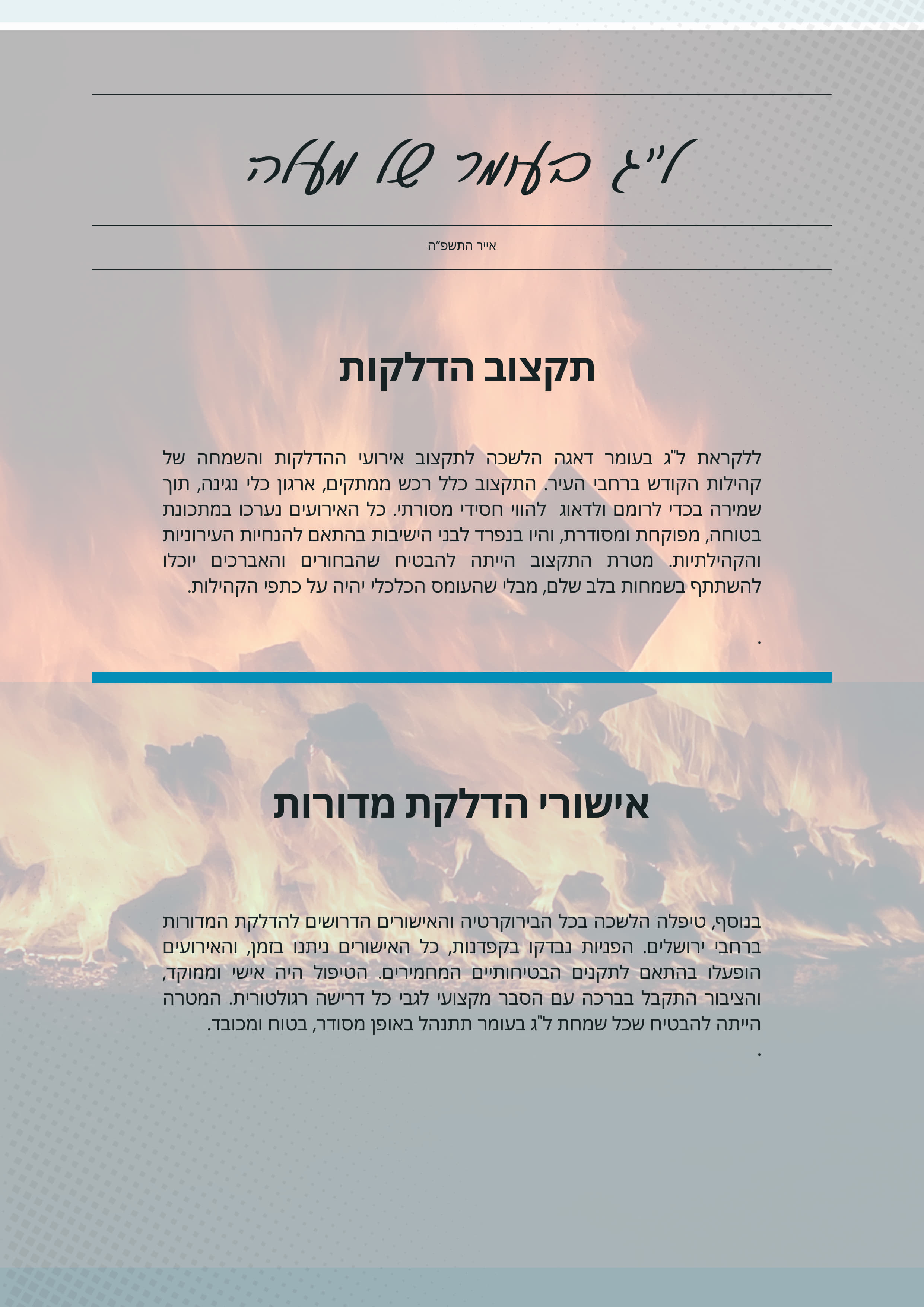 הסגן מסכם שנה: בלשכת סגן ראש העיר ירושלים, יצחק מאיר ברים, סיכמו את שנת תשפ"ה עם רשימת הישגים מרשימה במגוון תחומים לטובת הציבור החרדי בירושלים. בערב החג הופץ לעשרות אלפי תושבים ניוזלטר חגיגי תחת הכותרת "סיכום שנה של מעלה", המסכם את פעילות הלשכה במהלך השנה החולפת.