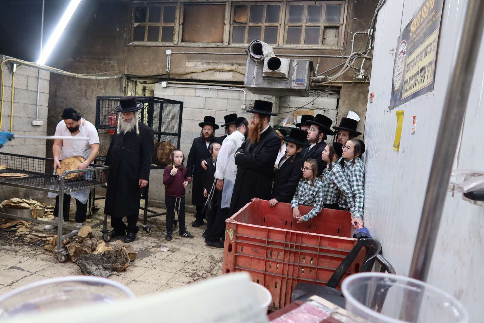 האדמו"ר שליט"א סייר לכל אורך אפיית המצות החל בנתינת המים שלנו עד להוצאת המצות מהתנור, כשבסיום ערך "הפרשת חלה" מהמצות.
