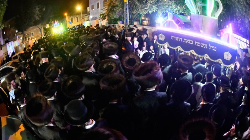 מאות החסידים חגגו: ספר תורה חדש בבית המדרש של דושינסקיא • גלריה
